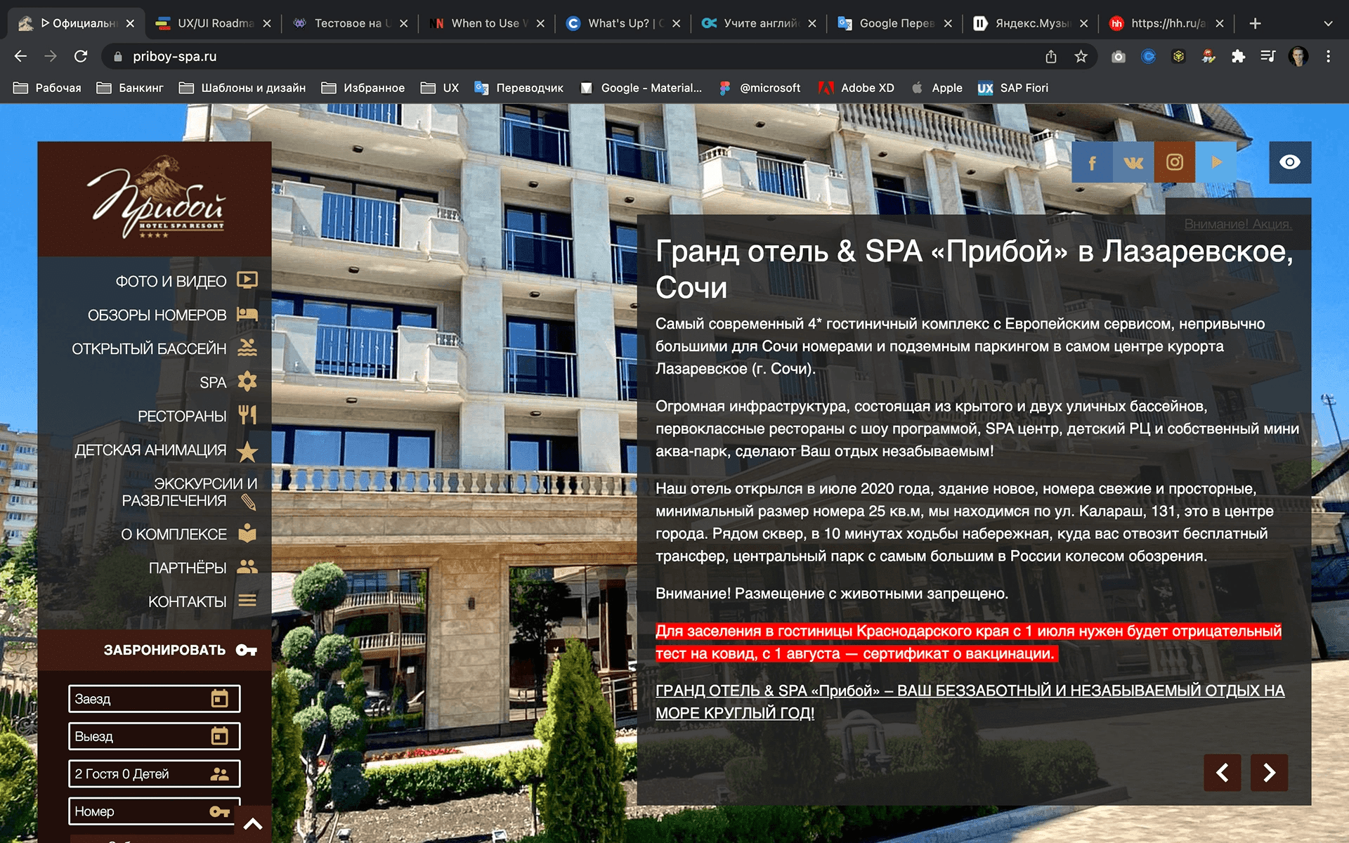 The redesign was made based on UX research and competitor audit. This design has economic and analytical justification. Qualitative and quantitative research was conducted. At the moment, after 2 annual sprints and 3 iterations, the analytics of this business shows a conversion of 16%-25%, which is a very high figure. I took as a basis the Special KPI script in A/B testing, calculated the amount of time for booking, payment. The client must figure it out himself, find out the price in the chat bot, then make a booking. The task of the business was this: to refuse "Travelin" and other third-party services. Also, the main task was to increase SEO, site speed, satisfaction by 50-90%