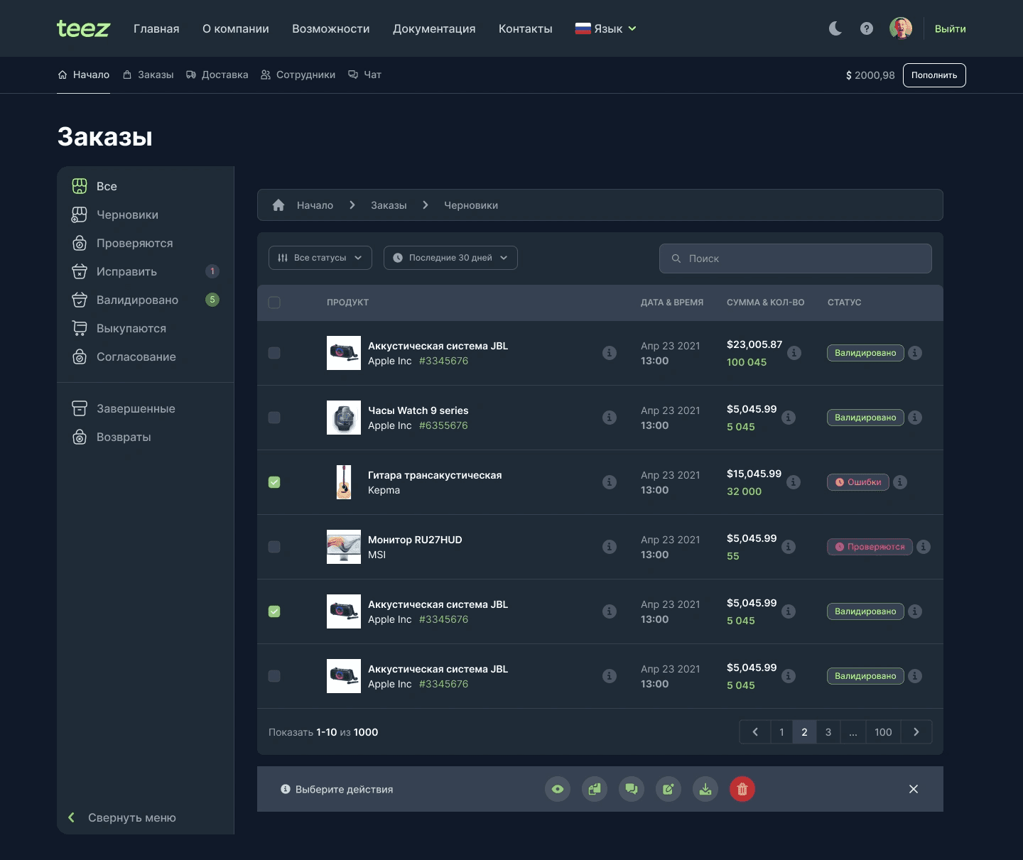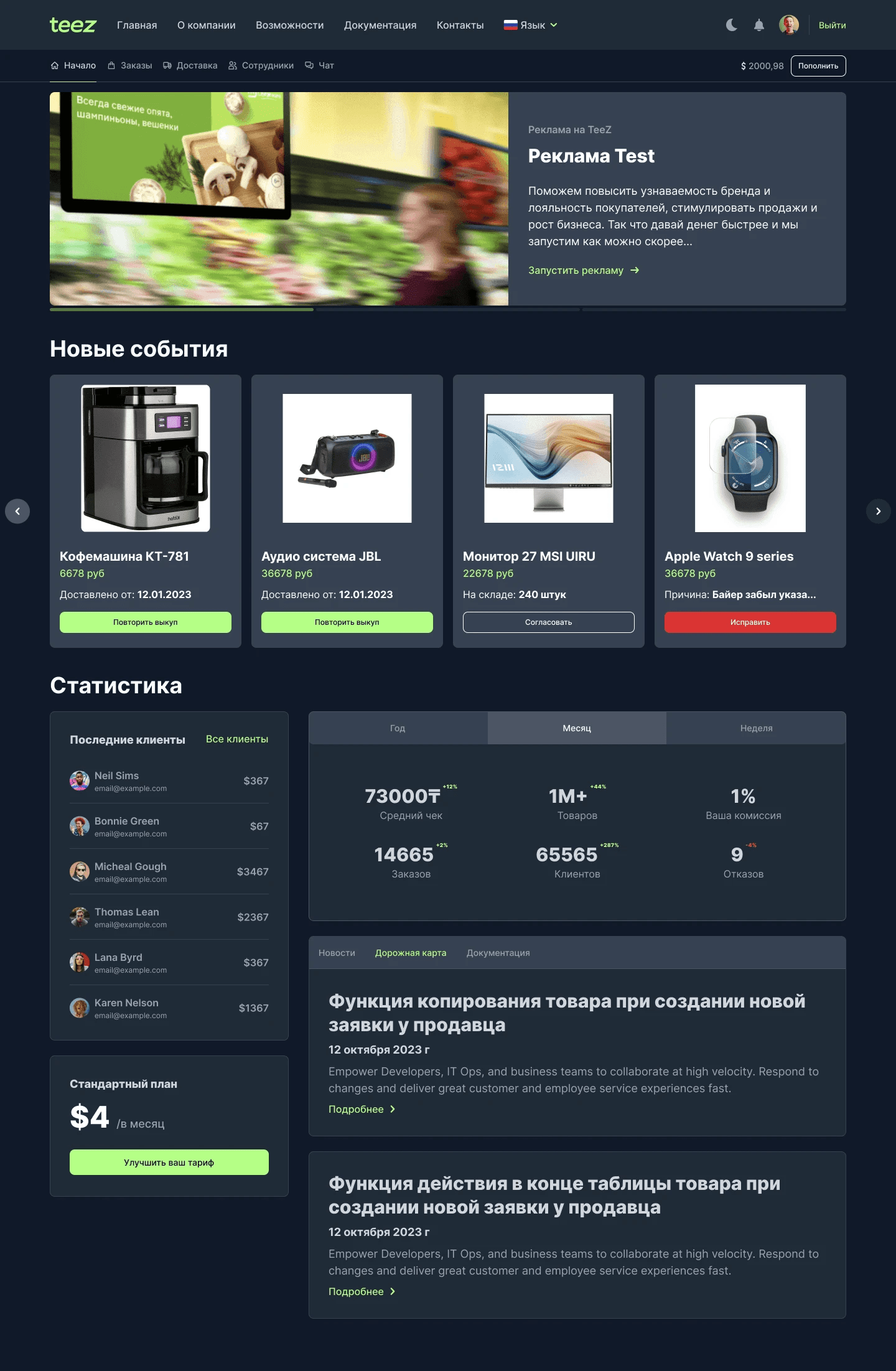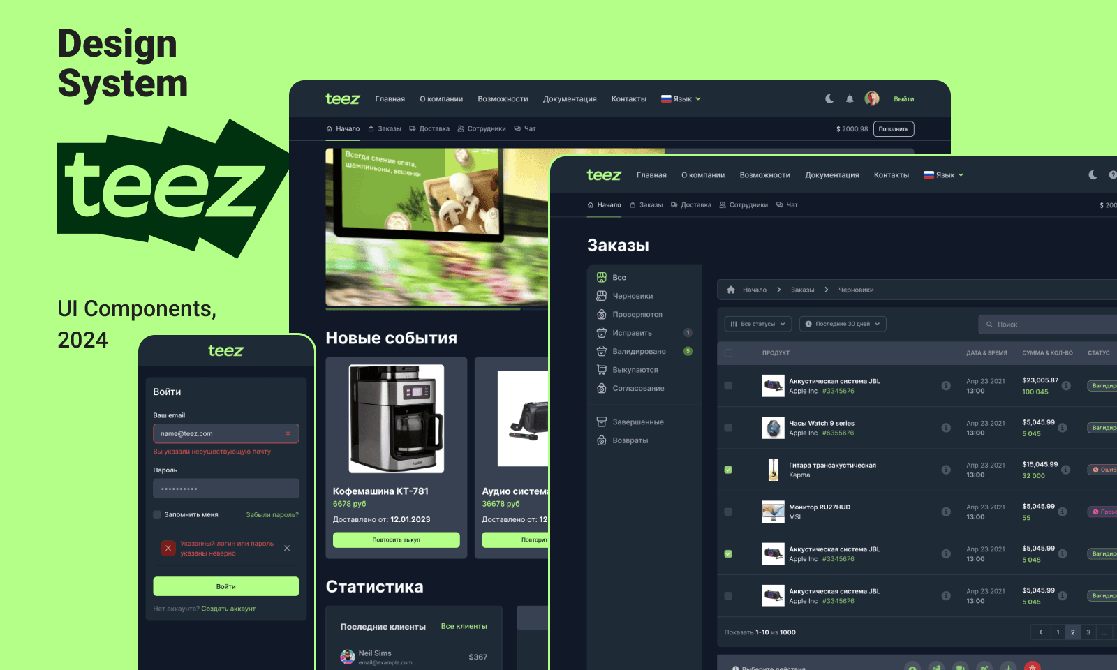 Teez Global. Design system, UI-kit, Dashboards design for sellers, buyers.