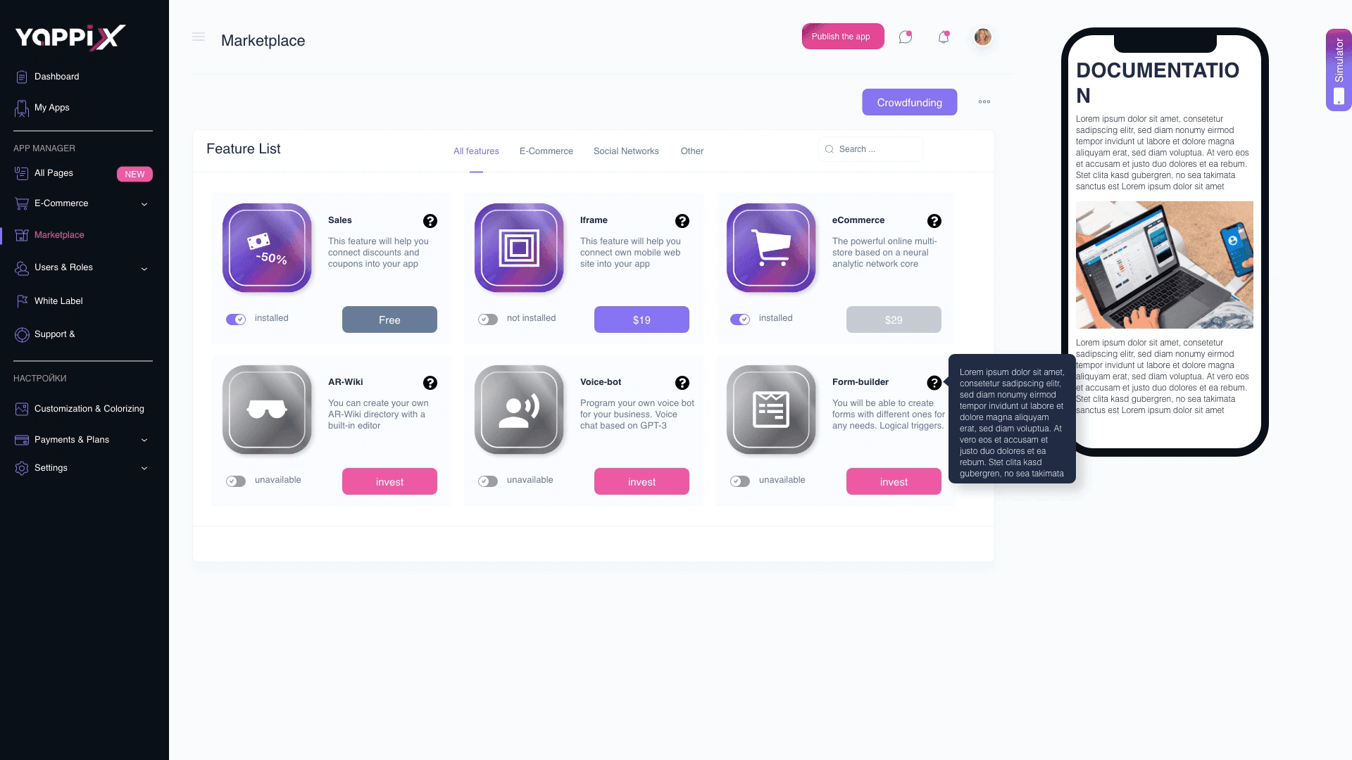 Before we started developing this product, we did a cust-dev. We used Siberian CMS as a research of interest. Installed on their VDS Platform Edition, then involved more than 2600 people in the test. All these people have created over 4000 apps and provided feedback. Then we started developing our own product and raised 2 rounds of investments.